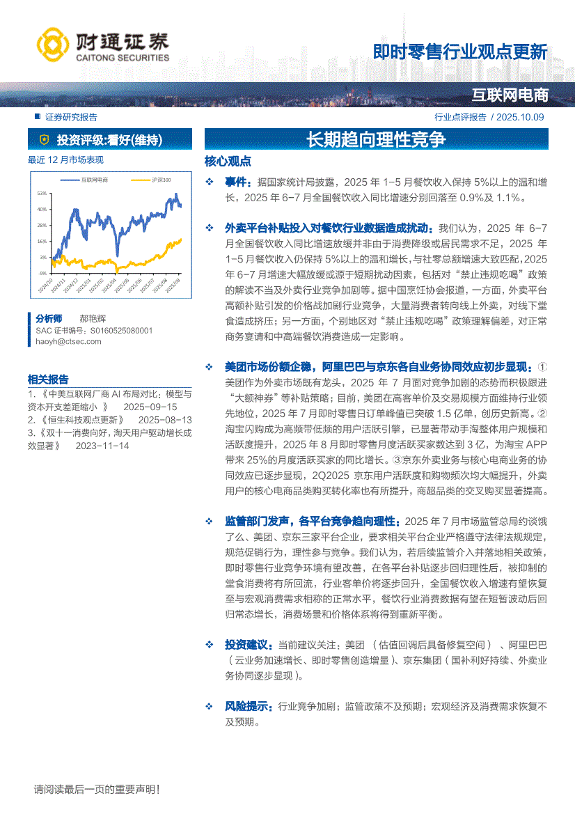 即时零售行业研报:财通证券-即时零售行业观点更新:长期趋向理性竞争-251009