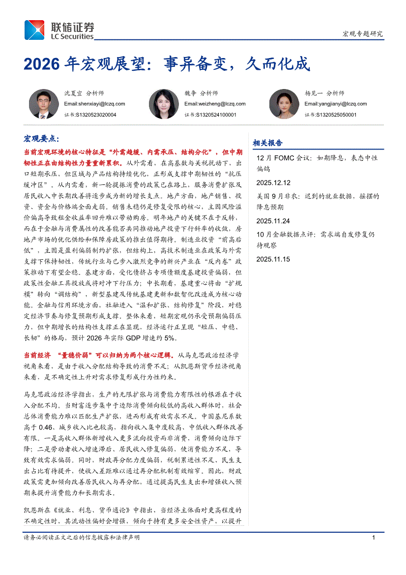研报:联储证券-2026年宏观展望:事异备变,久而化成-251215
