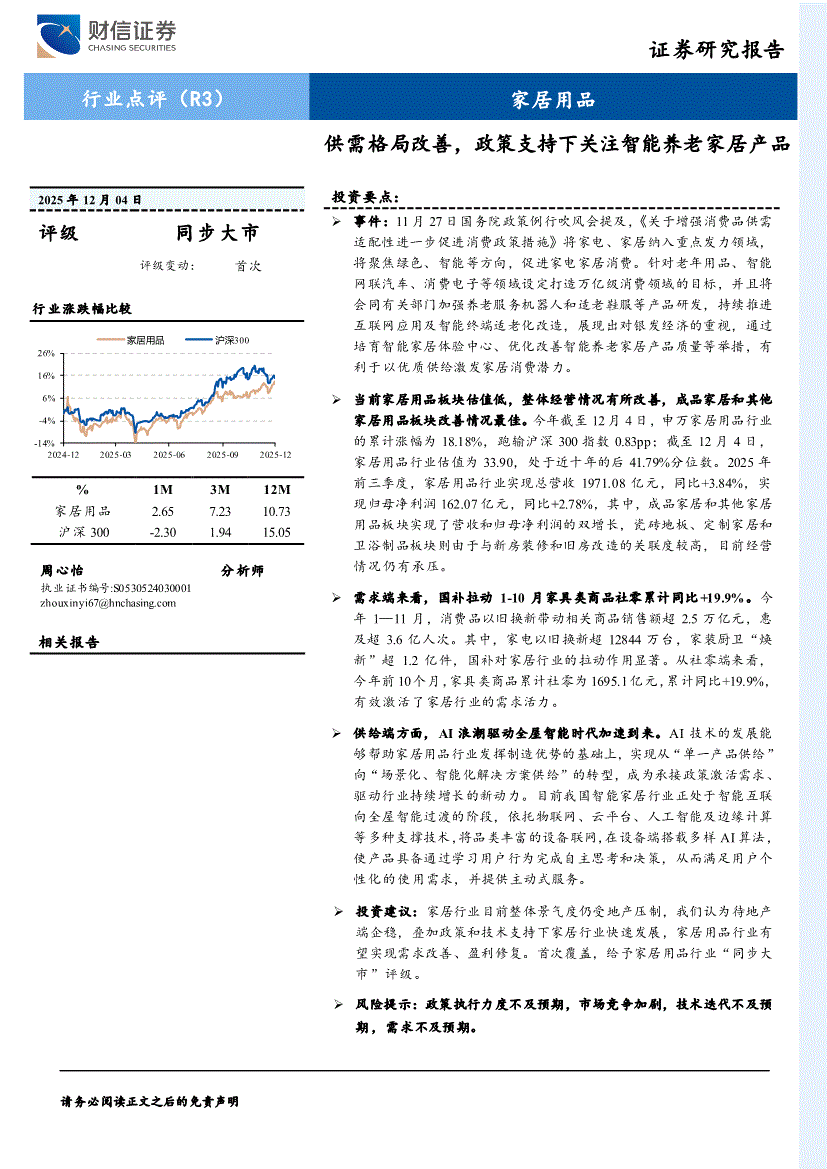 家居用品行业研报:财信证券-家居用品行业:供需格局改善,政策支持下关注智能养老家居产品-251204