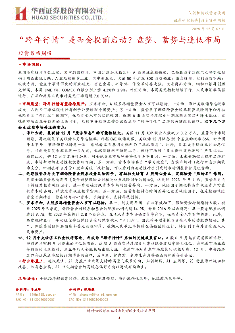 研报:华西证券-投资策略周报:“跨年行情”是否会提前启动?盘整、蓄势与逢低布局-251207