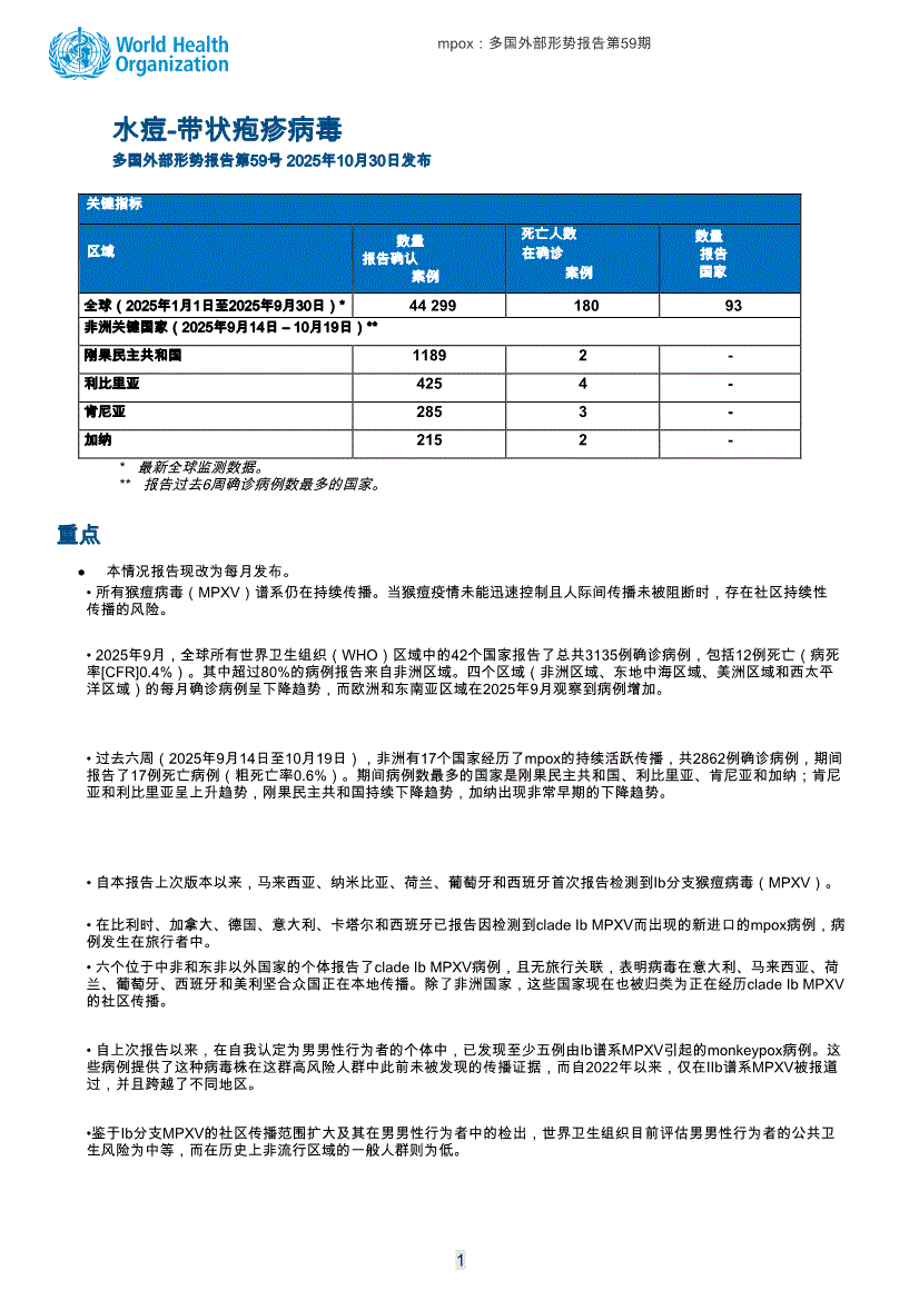 医疗健康行业研报:世界卫生组织-医疗健康行业:猴痘多国疫情,外部形势报告第59号~2025年10月30日(英译中)-251030