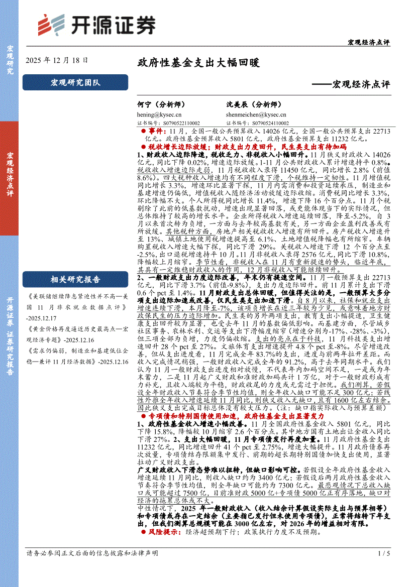 研报:开源证券-宏观经济点评:政府性基金支出大幅回暖-251218