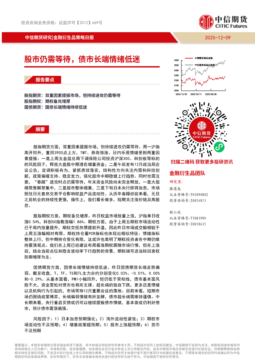 研报:中信期货-金融衍生品策略日报:股市仍需等待,债市长端情绪低迷-251209