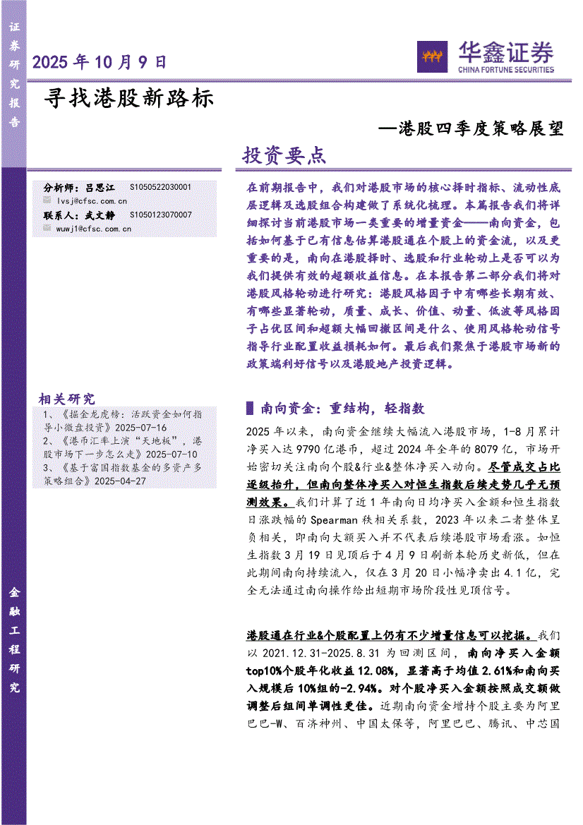 研报:华鑫证券-港股四季度策略展望:寻找港股新路标-251009