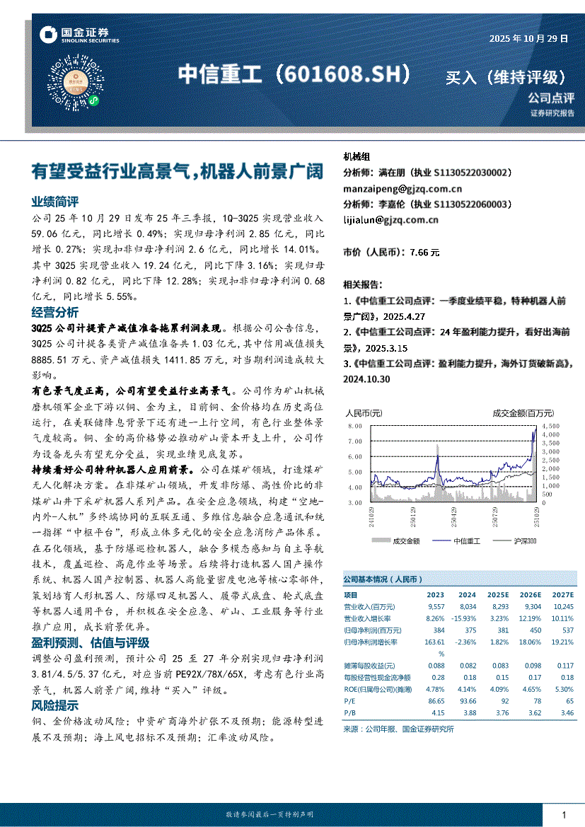 中信重工研报:国金证券-中信重工-601608-有望受益行业高景气,机器人前景广阔-251029