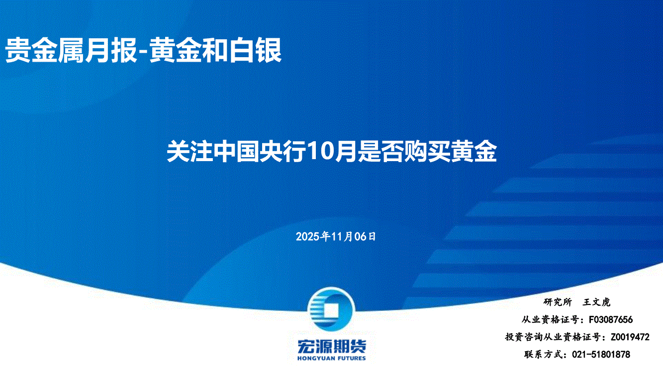 研报:宏源期货-贵金属月报~黄金和白银:关注中国央行10月是否购买黄金-251106