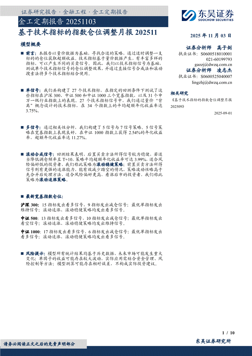 研报:东吴证券-金工定期报告:基于技术指标的指数仓位调整月报202511-251103