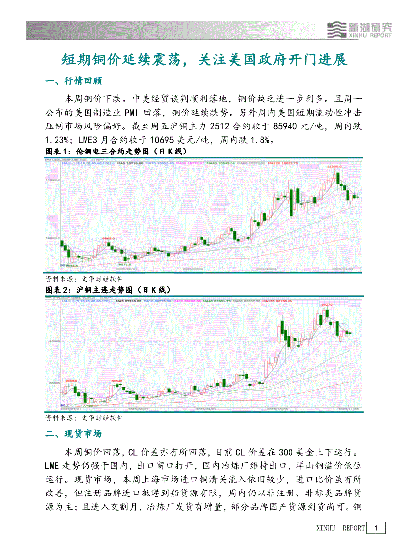 研报:新湖期货-短期铜价延续震荡,关注美国政府开门进展-251110