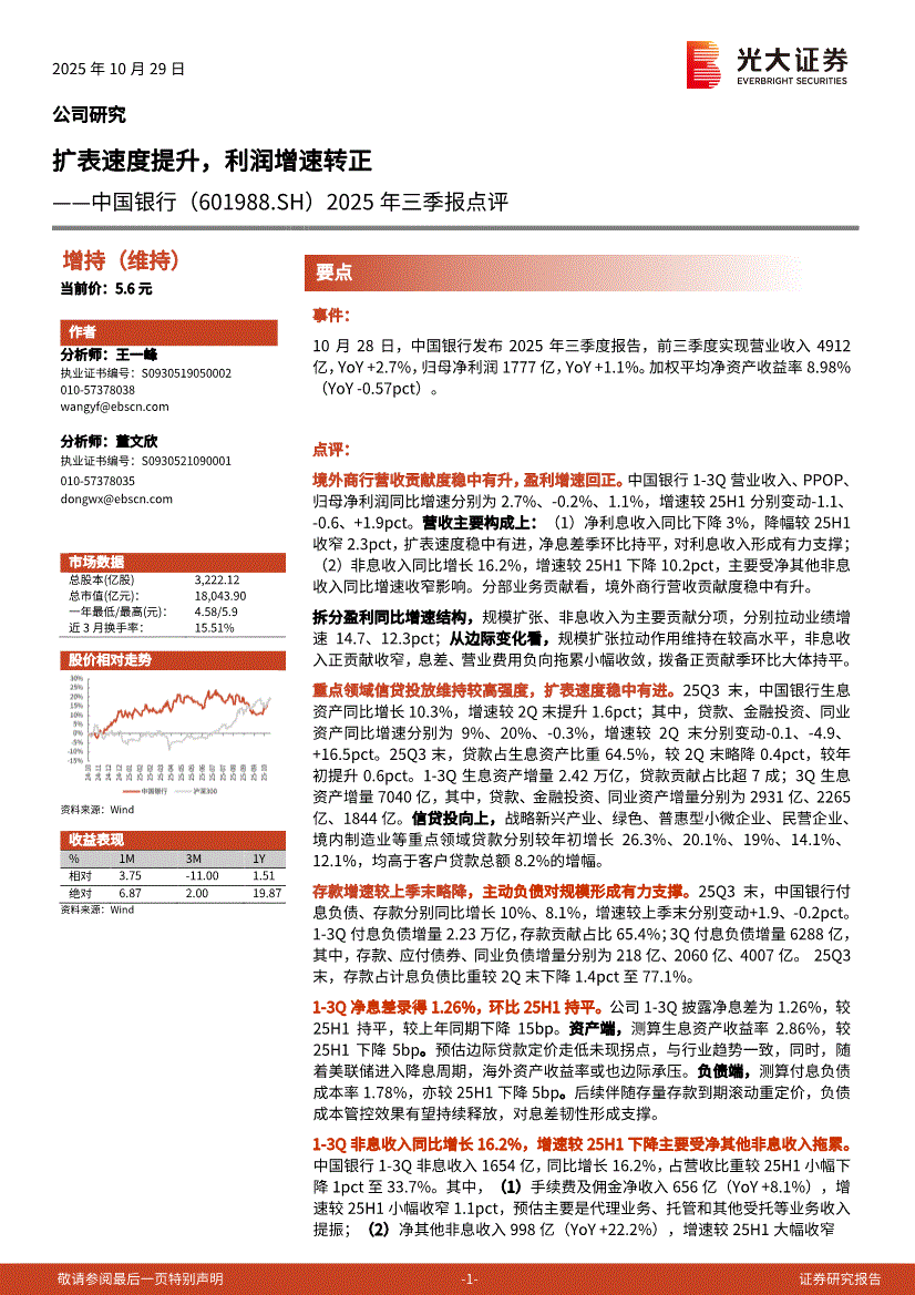 中国银行研报:光大证券-中国银行-601988-2025年三季报点评:扩表速度提升,利润增速转正-251029