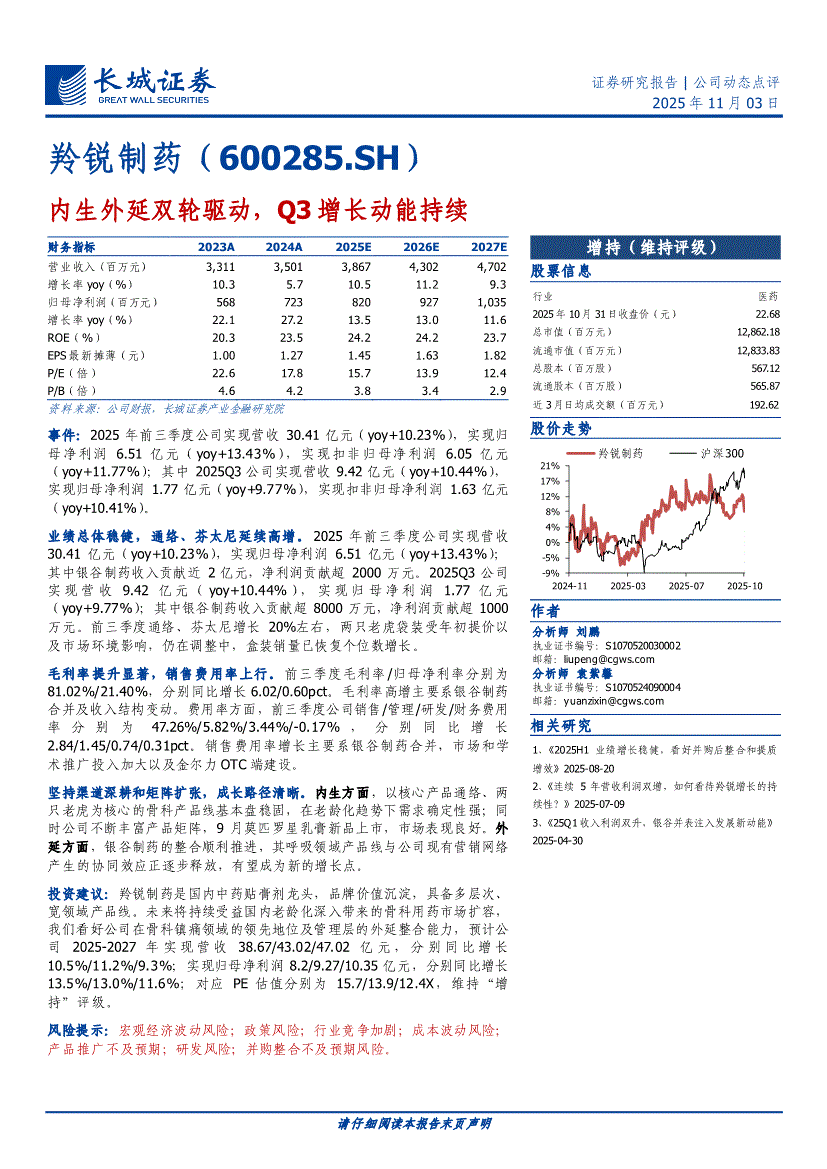 羚锐制药研报:长城证券-羚锐制药-600285-内生外延双轮驱动,Q3增长动能持续-251103