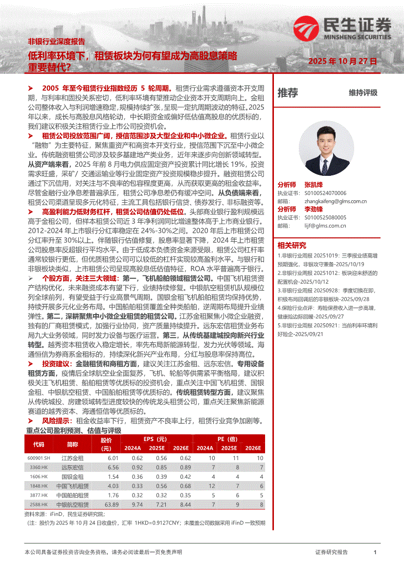 非银行业研报:民生证券-非银行业深度报告:低利率环境下,租赁板块为何有望成为高股息策略重要替代?-251027