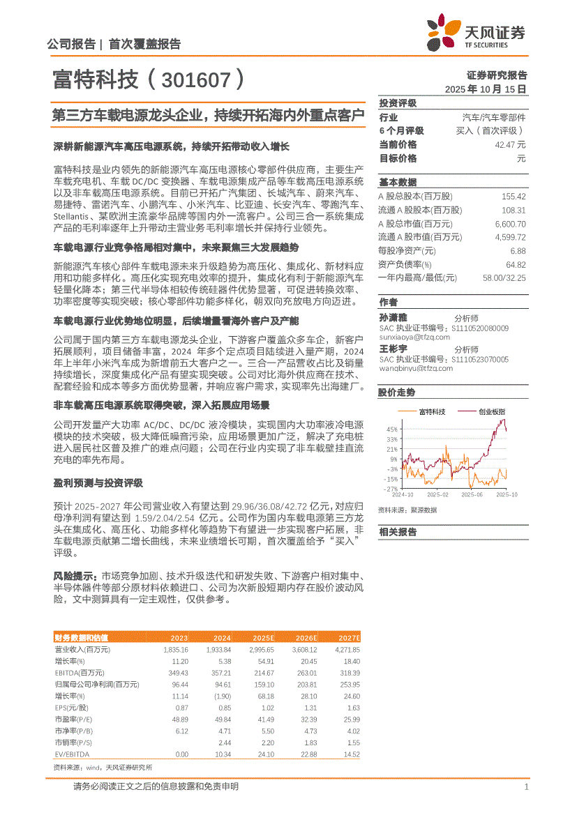 富特科技研报:天风证券-富特科技-301607-第三方车载电源龙头企业,持续开拓海内外重点客户-251015