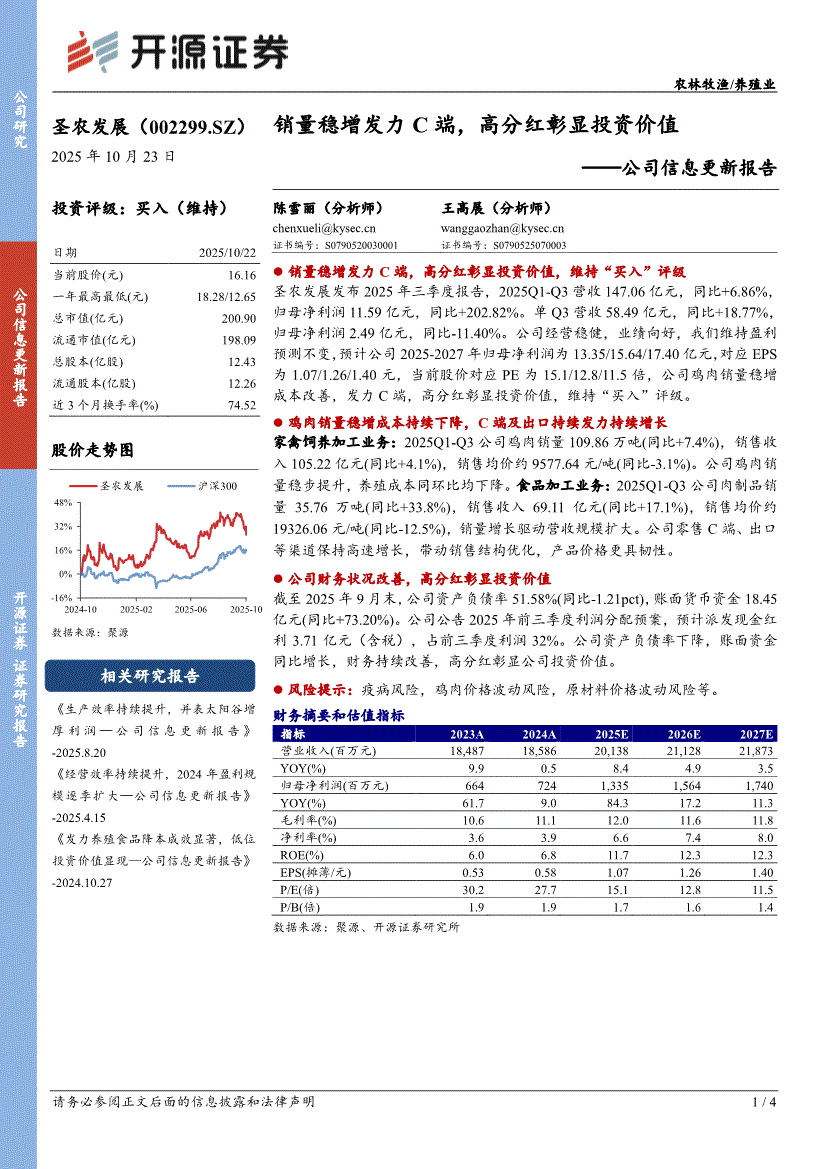 圣农发展研报:开源证券-圣农发展-002299-公司信息更新报告:销量稳增发力C端,高分红彰显投资价值-251023