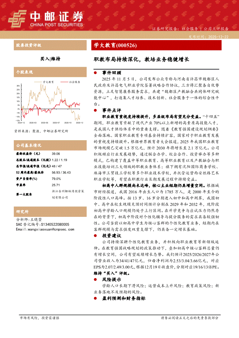 学大教育研报:中邮证券-学大教育-000526-职教布局持续深化,教培业务稳健增长-251222