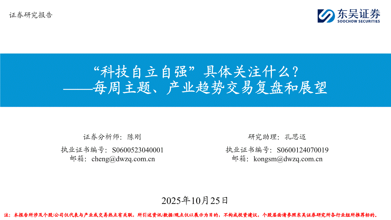 研报:东吴证券-每周主题、产业趋势交易复盘和展望:“科技自立自强”具体关注什么?-251025