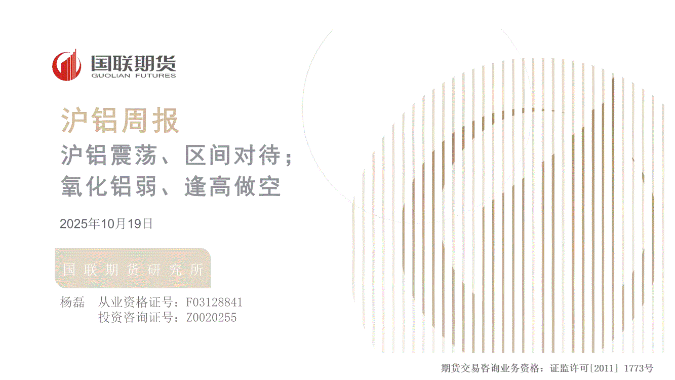 研报:国联期货-沪铝周报:沪铝震荡、区间对待;氧化铝弱、逢高做空-251019