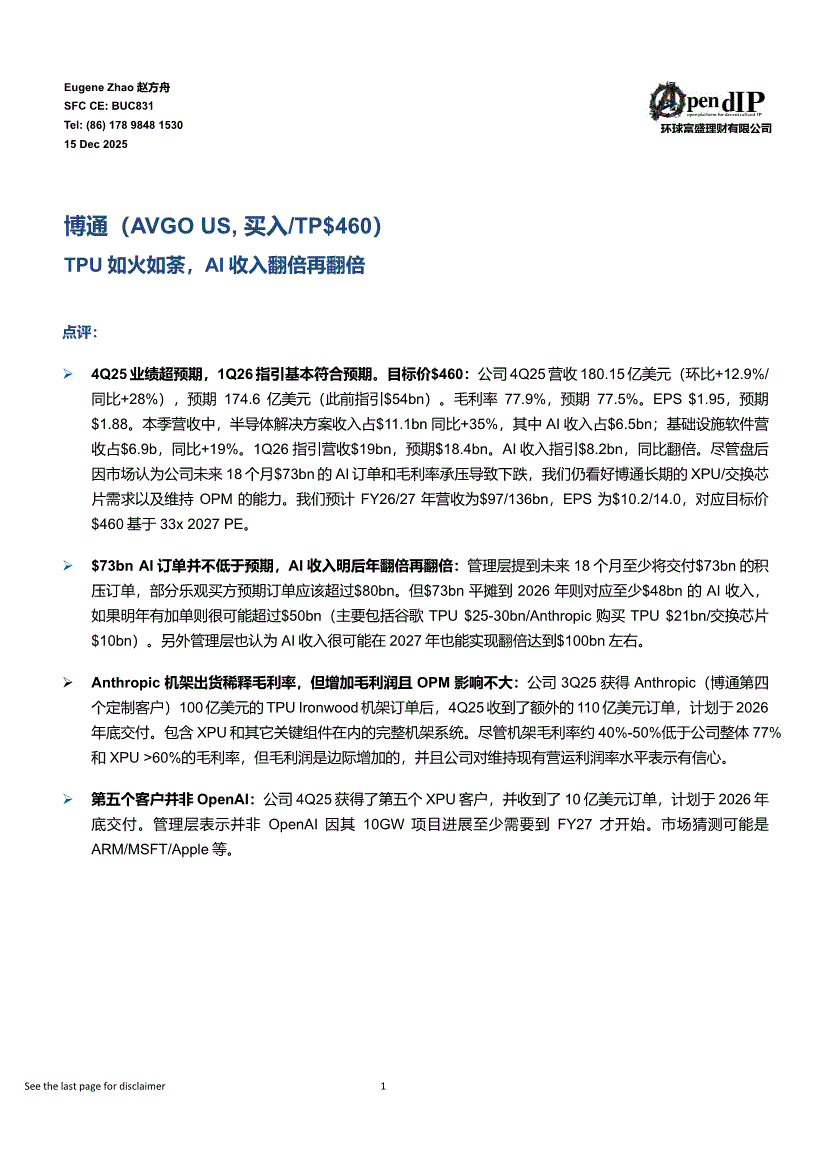 博通研报:环球富盛-博通-AVGO.US-TPU如火如荼,AI收入翻倍再翻倍-251215