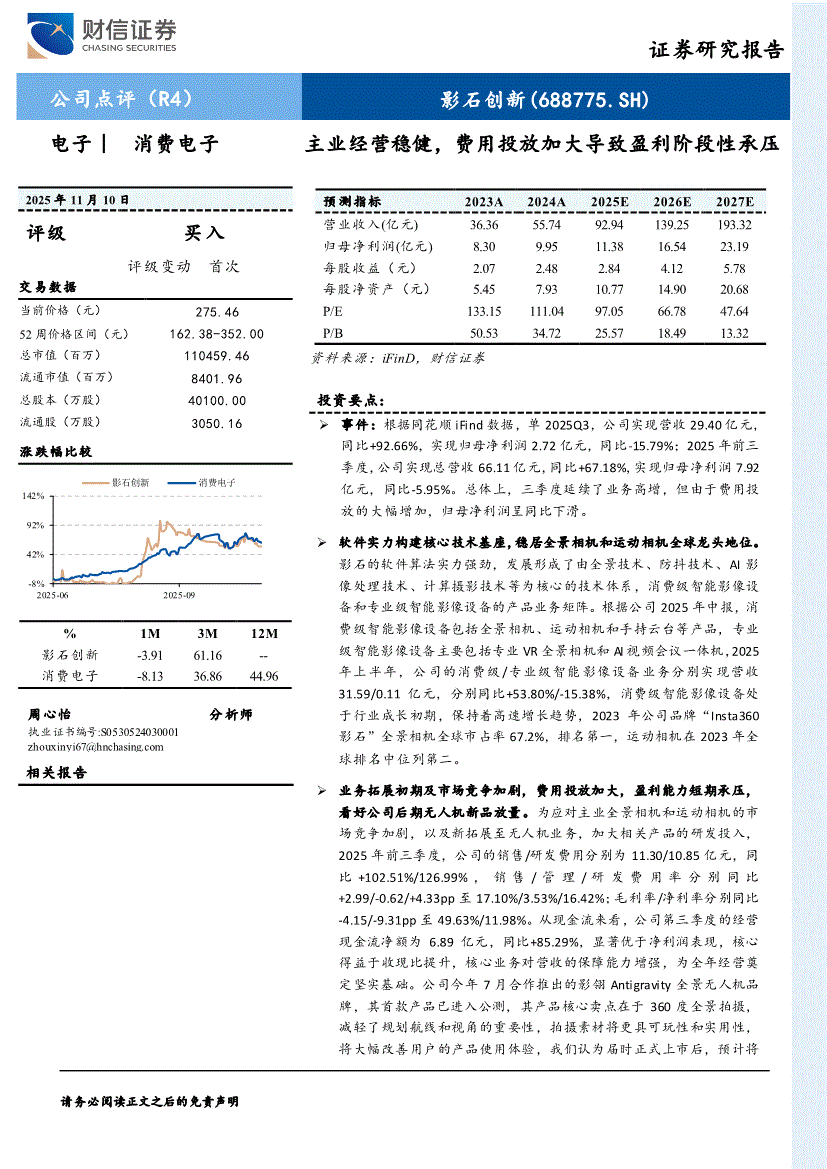 影石创新研报:财信证券-影石创新-688775-主业经营稳健,费用投放加大导致盈利阶段性承压-251110