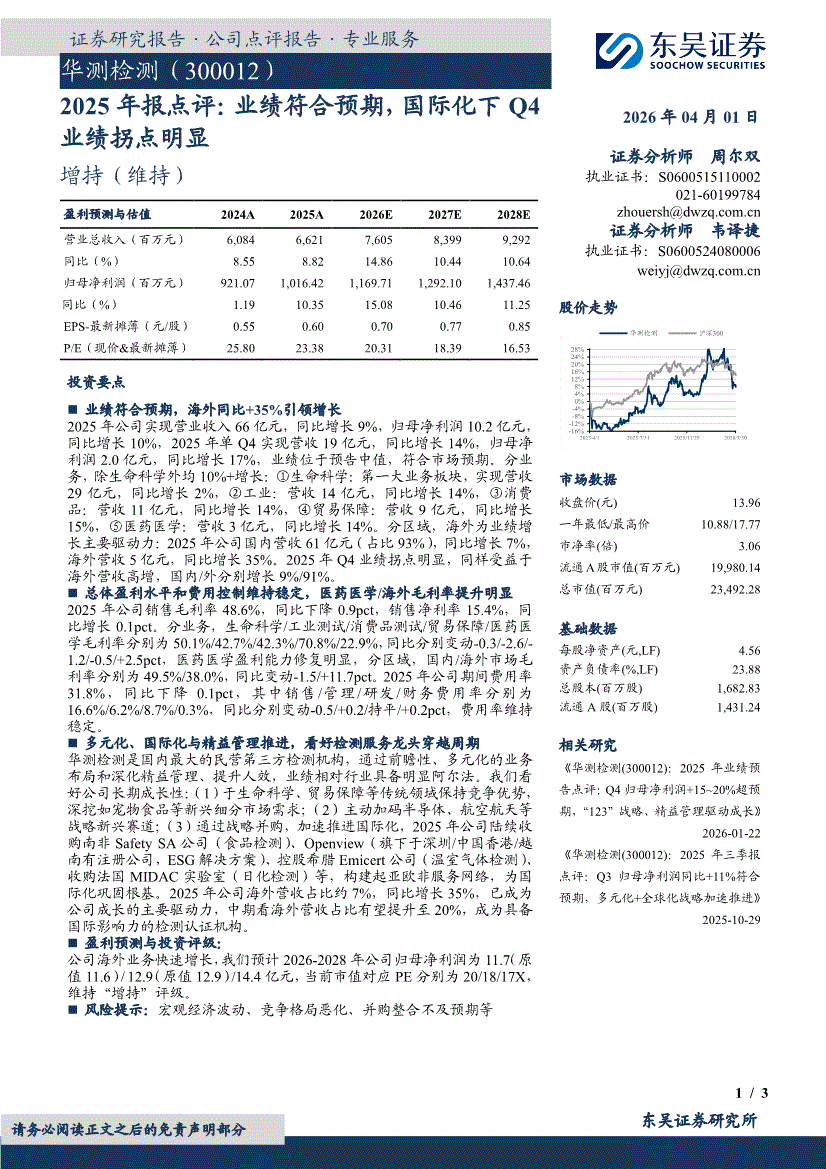 华测检测研报:东吴证券-华测检测-300012-2025年报点评:业绩符合预期,国际化下Q4业绩拐点明显-260401