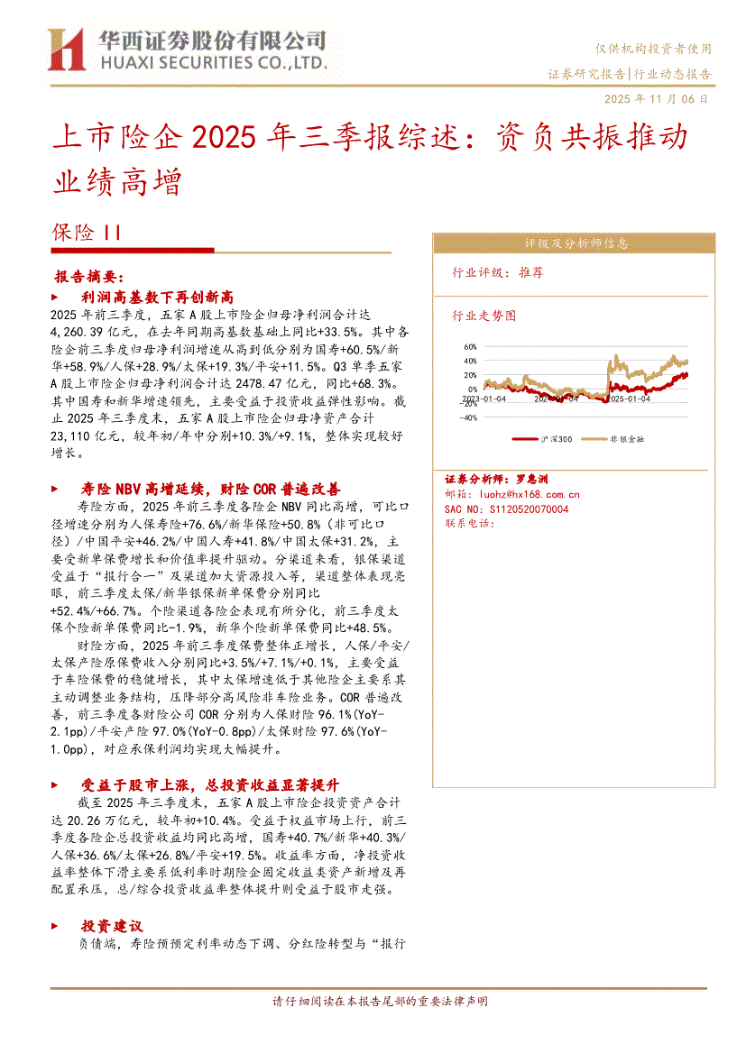 保险行业研报:华西证券-保险行业上市险企2025年三季报综述:资负共振推动业绩高增-251106