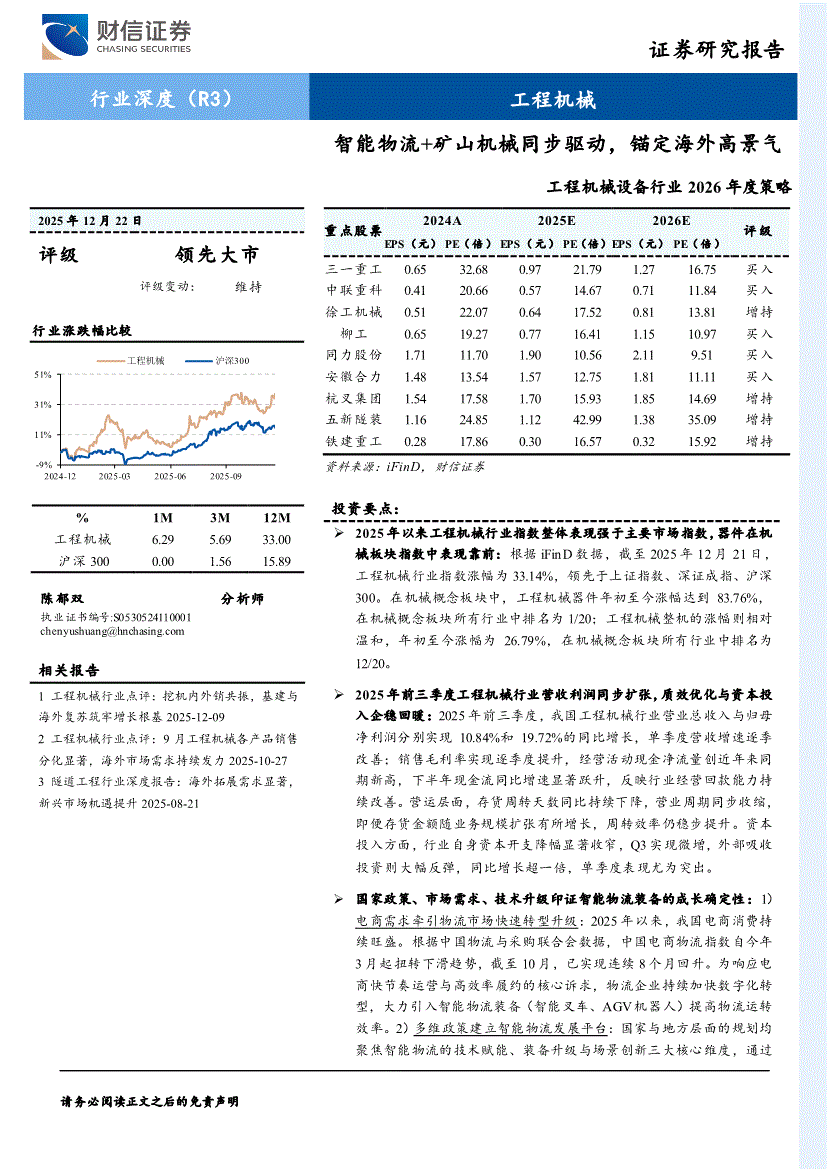 工程机械设备行业研报:财信证券-工程机械设备行业2026年度策略:智能物流+矿山机械同步驱动,锚定海外高景气-251222