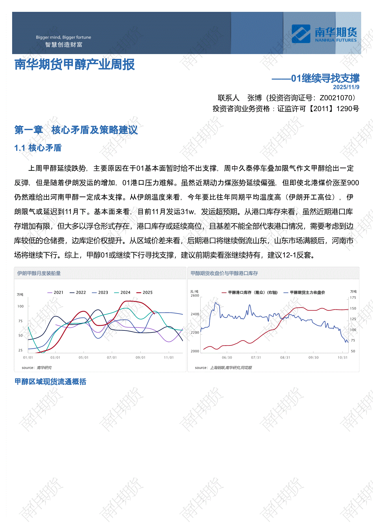 研报:南华期货-甲醇产业周报:01继续寻找支撑-251109