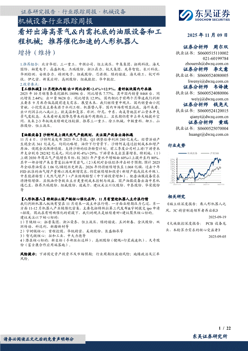 机械设备行业研报:东吴证券-机械设备行业跟踪周报:看好出海高景气&内需托底的油服设备和工程机械;推荐催化加速的人形机器人-251109