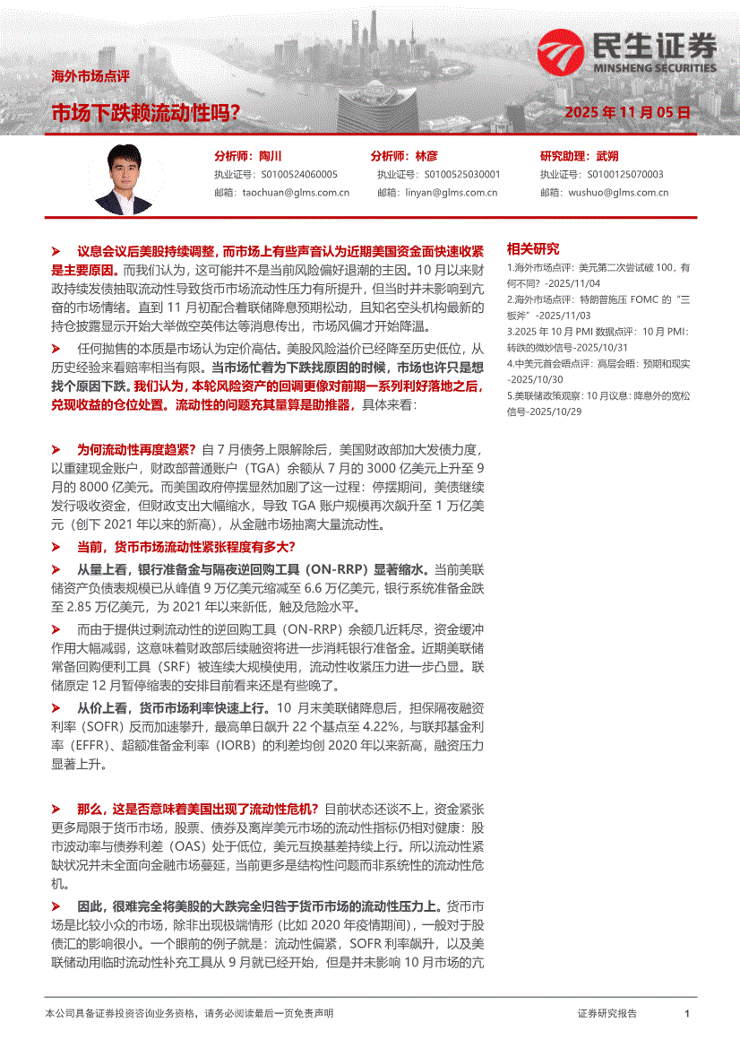 研报:民生证券-海外市场点评:市场下跌赖流动性吗?-251105