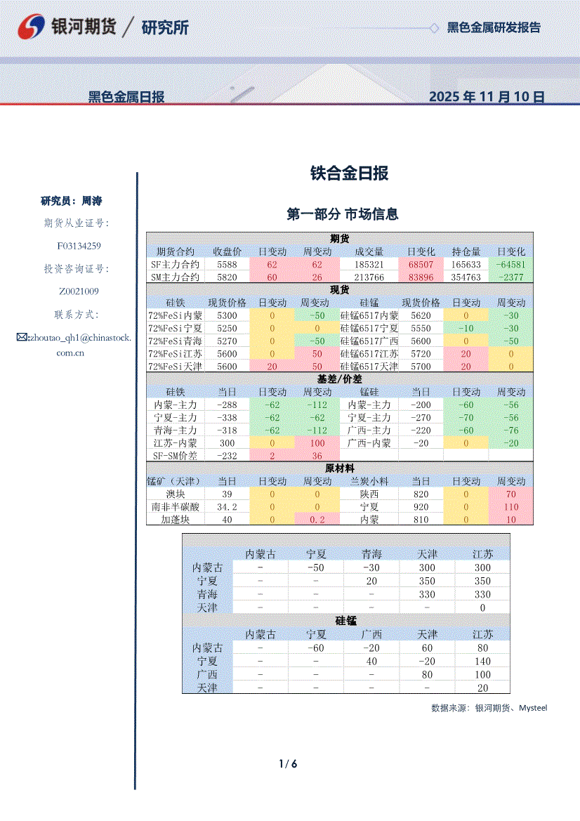 研报:银河期货-铁合金日报-251110