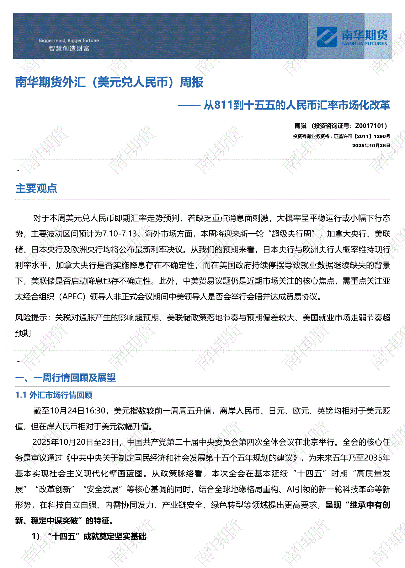 南华期货-外汇(美元兑人民币)周报:从811到十五五的人民币汇率市场化改革-251026