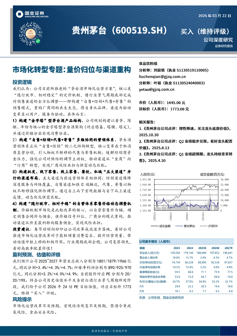 贵州茅台研报:国金证券-贵州茅台-600519-市场化转型专题:量价归位与渠道重构-260322