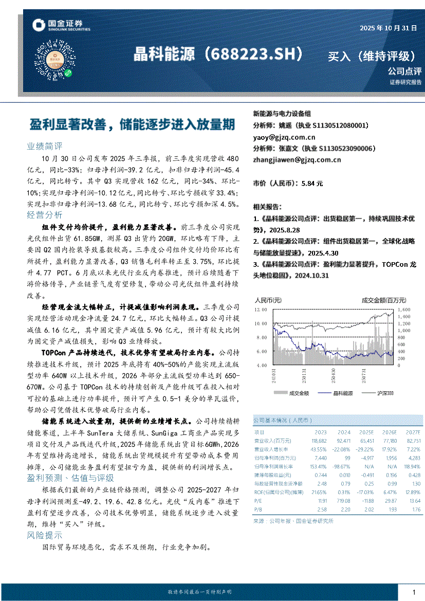 晶科能源研报:国金证券-晶科能源-688223-盈利显著改善,储能逐步进入放量期-251031