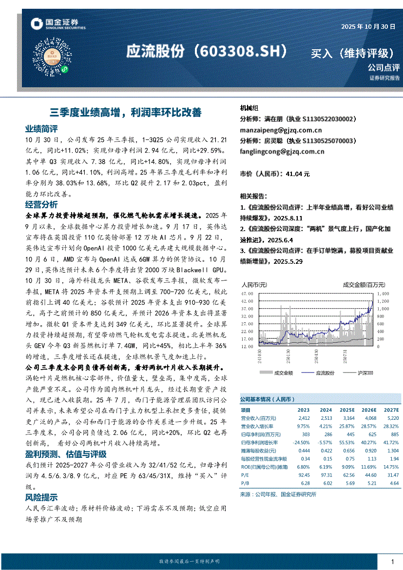 应流股份研报:国金证券-应流股份-603308-三季度业绩高增,利润率环比改善-251030