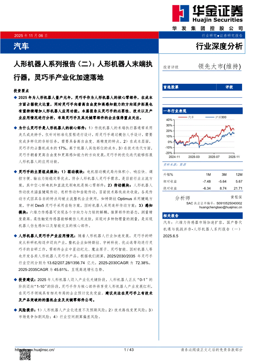 人形机器人行业研报:华金证券-人形机器人行业系列报告(二):人形机器人末端执行器,灵巧手产业化加速落地-251106