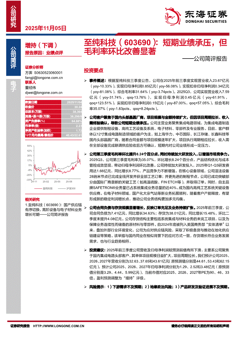 至纯科技研报:东海证券-至纯科技-603690-公司简评报告:短期业绩承压,但毛利率环比改善显著-251105