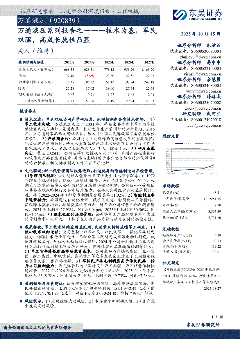 万通液压研报:东吴证券-万通液压-920839-万通液压系列报告之一:技术为基,军民双驱,高成长属性凸显-251015