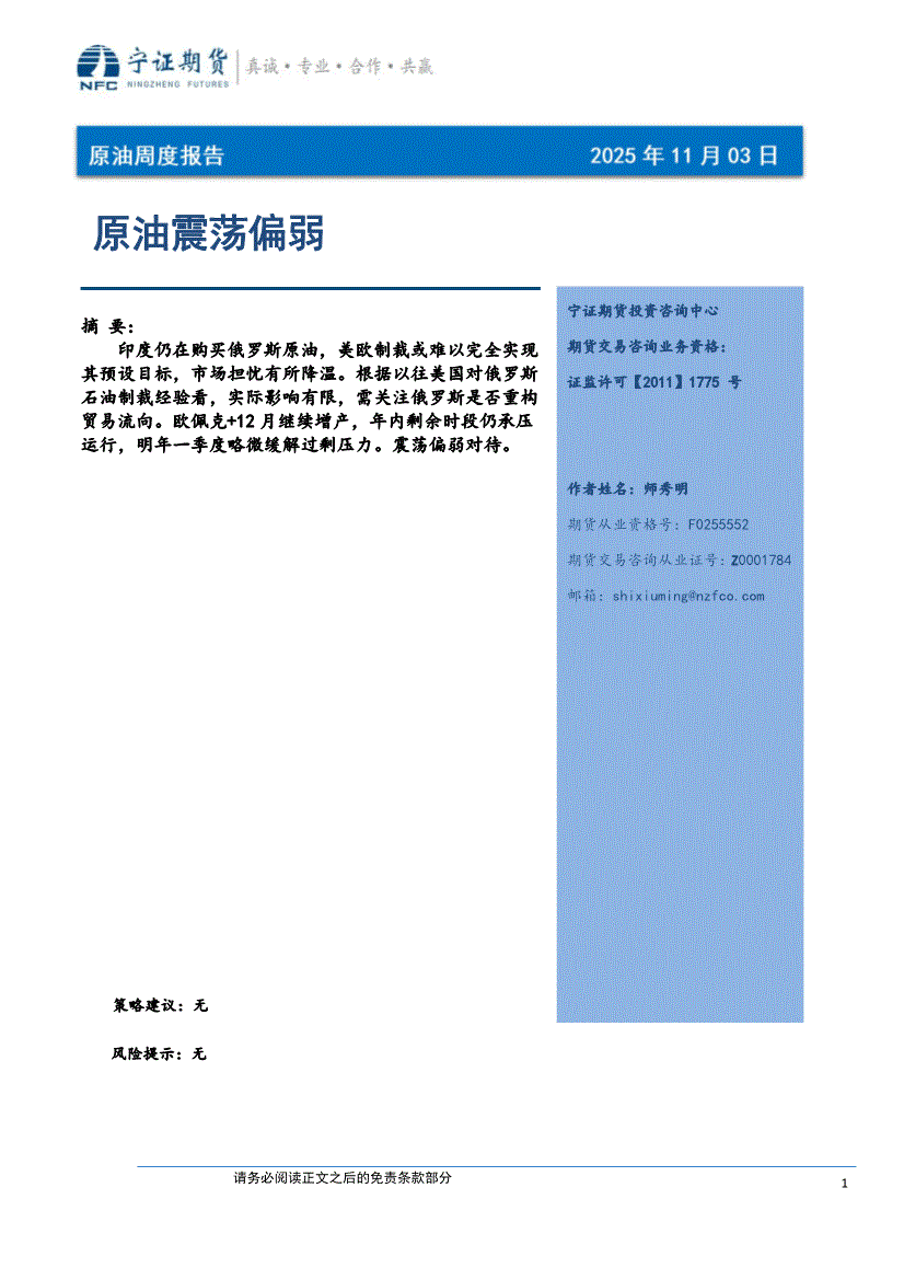 研报:宁证期货-原油周度报告:原油震荡偏弱-251103