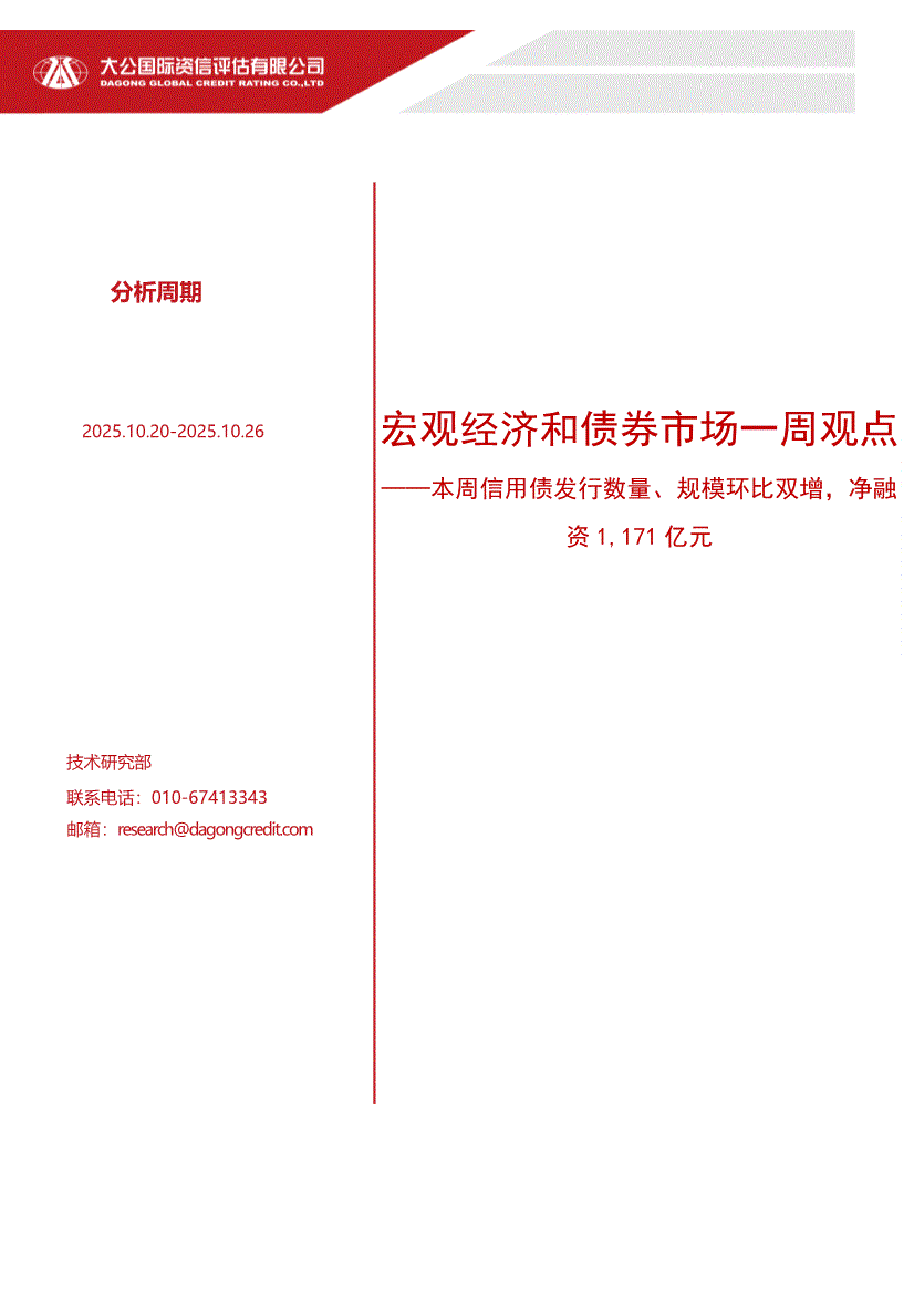 研报:大公国际-宏观经济和债券市场一周观点:本周信用债发行数量、规模环比双增,净融资1,171亿-251026