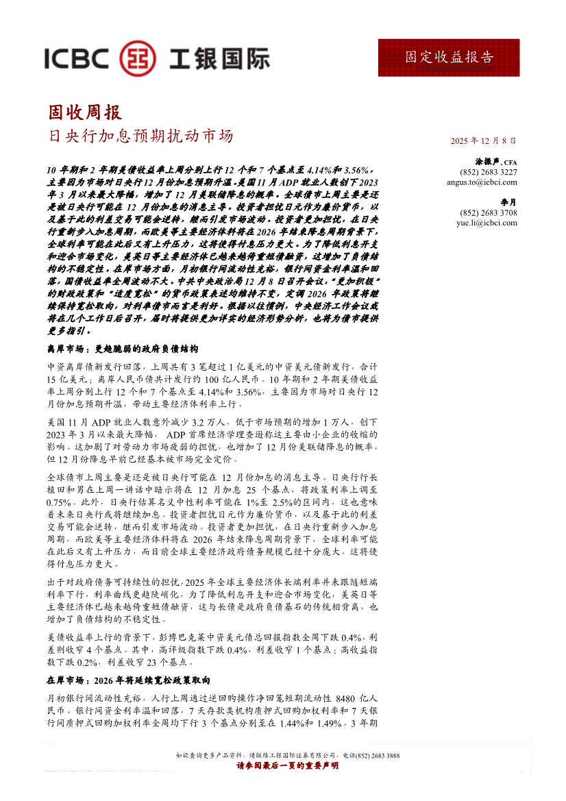 研报:工银国际-固收周报:日央行加息预期扰动市场-251208