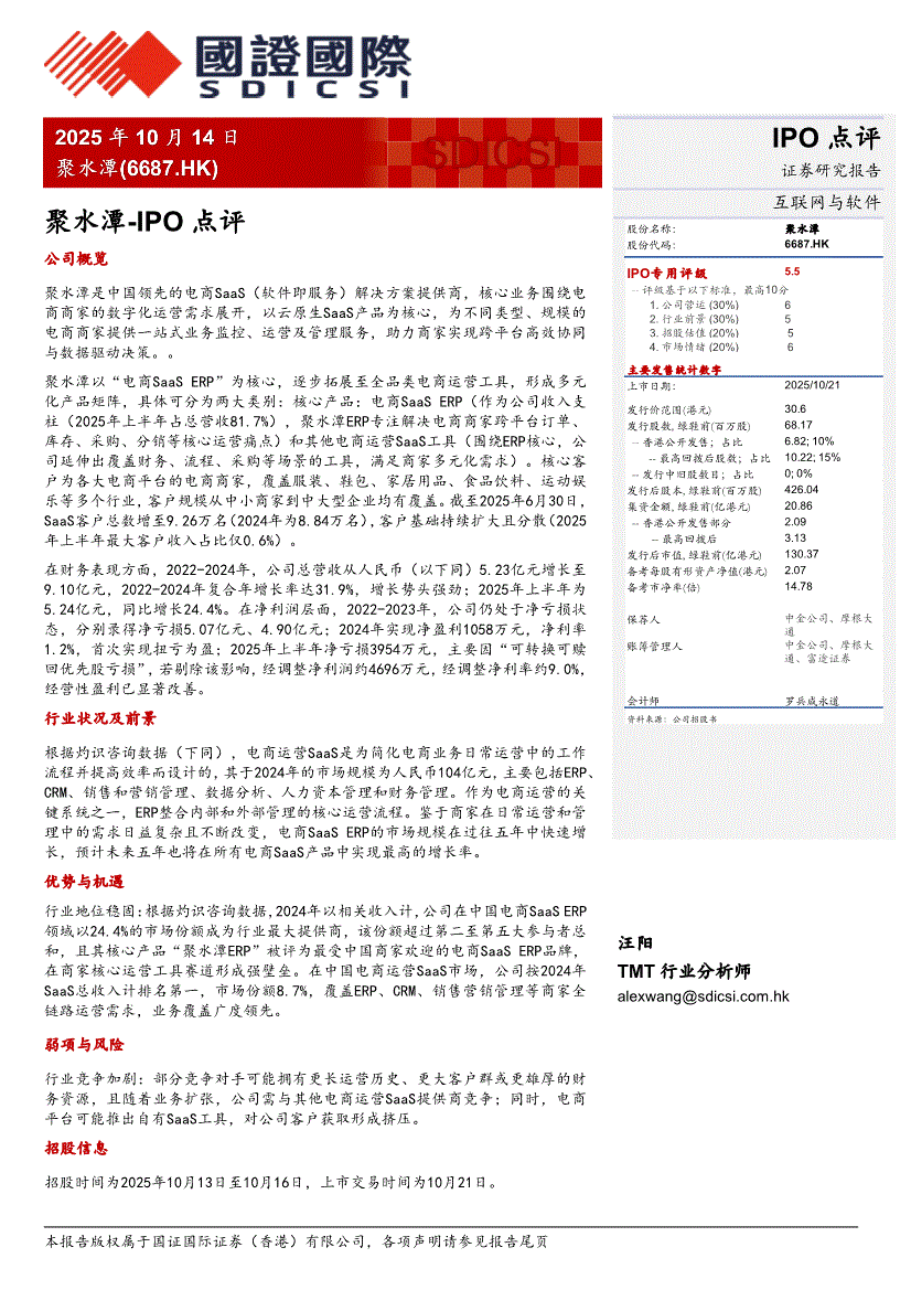 研报:国证国际-IPO点评:聚水潭(6687.HK)-251014