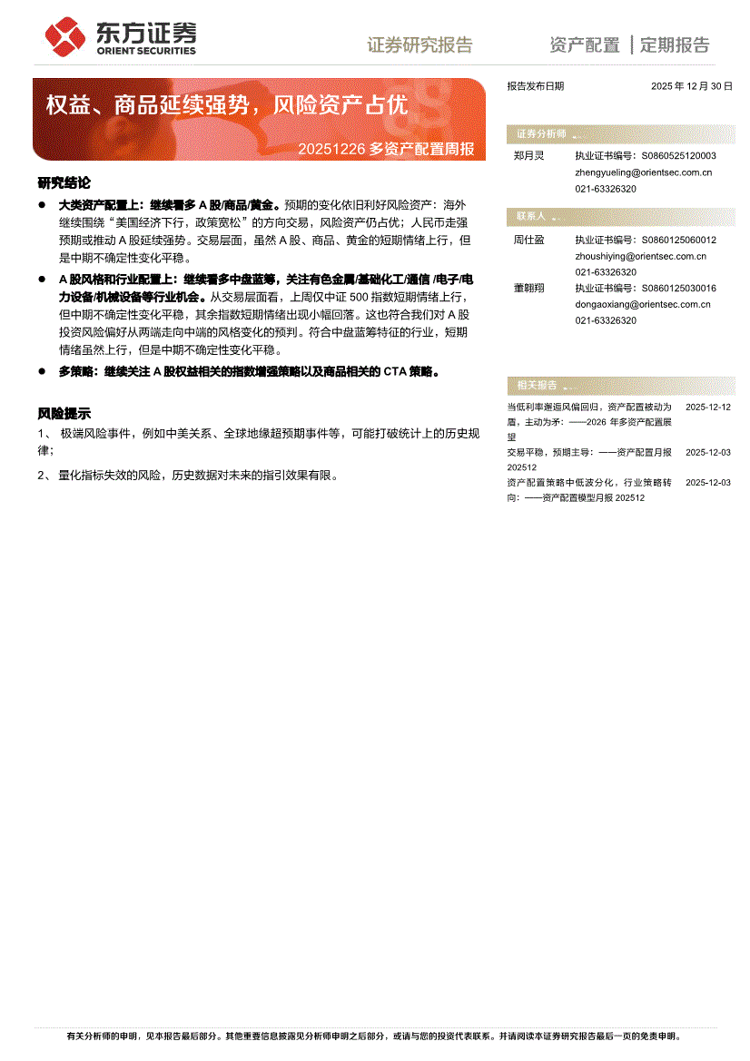 研报:东方证券-20251226多资产配置周报:权益、商品延续强势,风险资产占优-251230