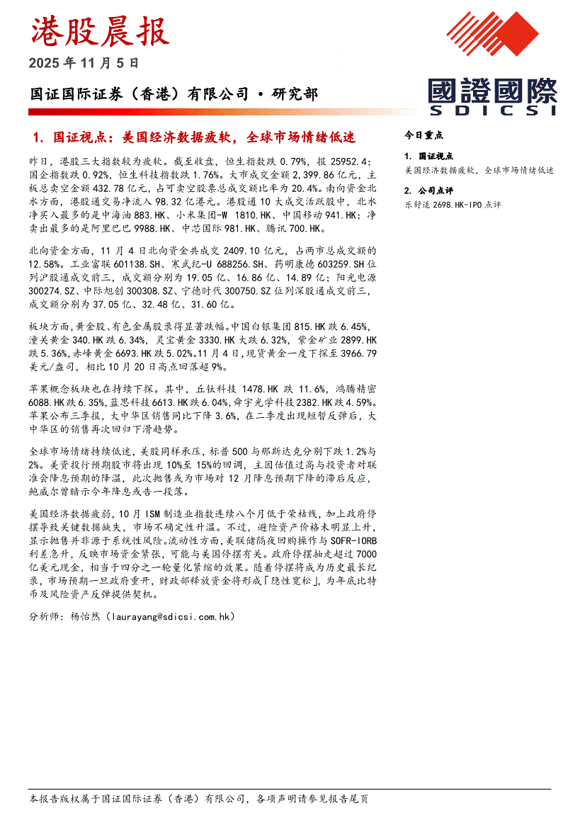 新华汇富-汇富快讯:香港及中国市场日报-251104