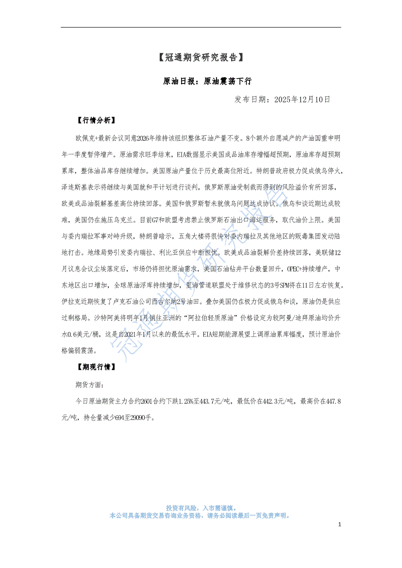 研报:冠通期货-原油日报:原油震荡下行-251210