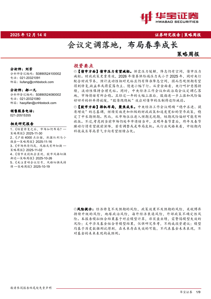 研报:华宝证券-策略周报:会议定调落地,布局春季成长-251214