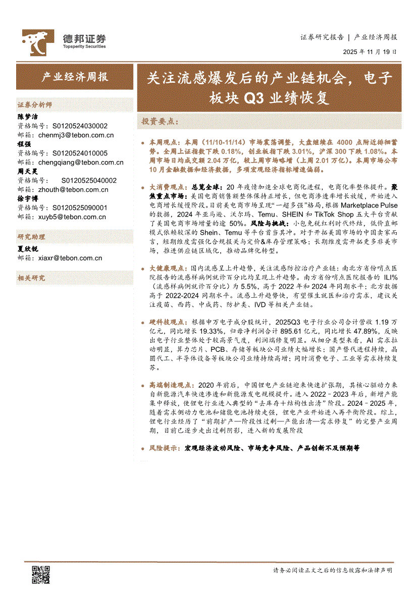 研报:德邦证券-产业经济周报:关注流感爆发后的产业链机会,电子板块Q3业绩恢复-251119