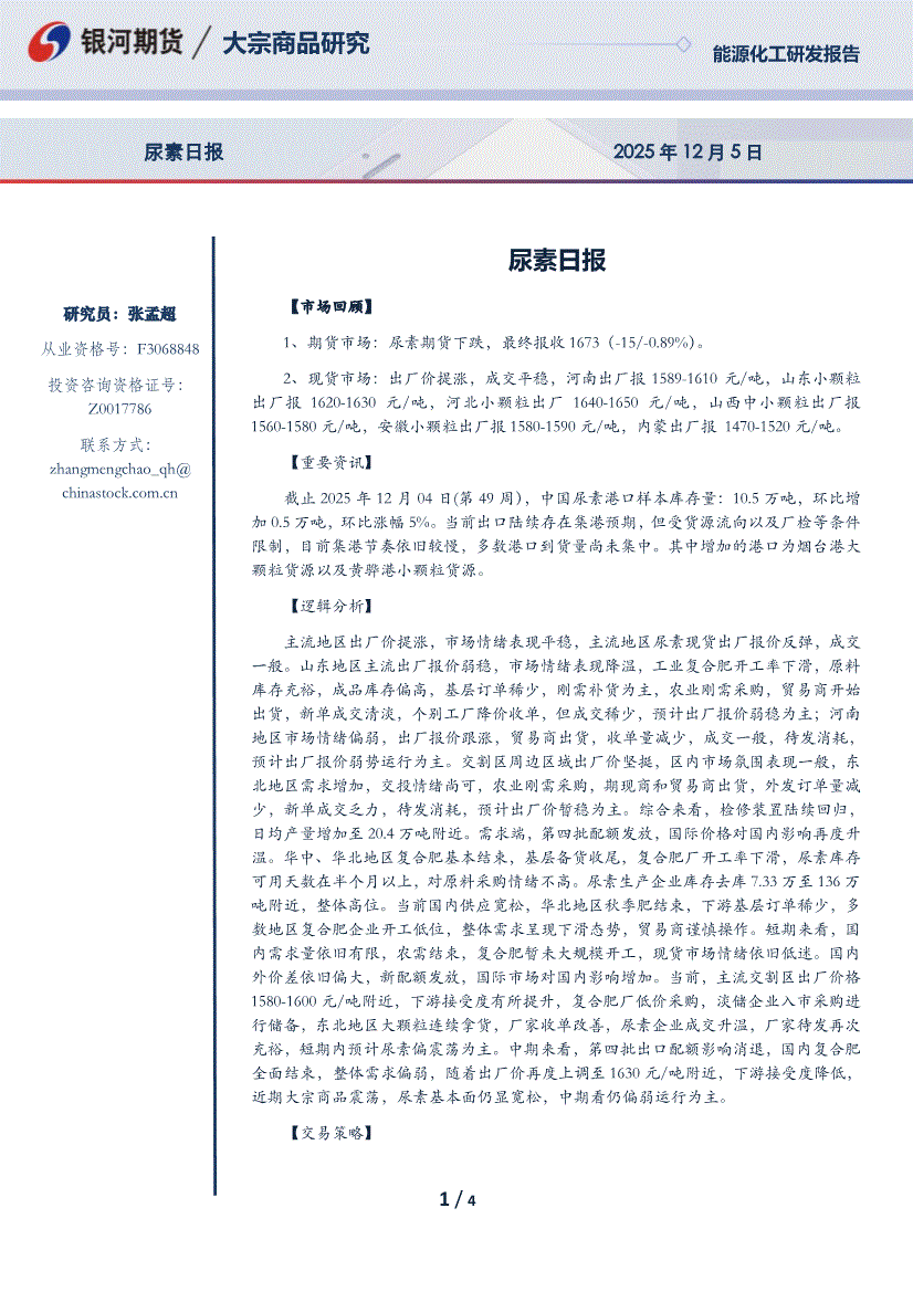 银河期货-尿素日报-251205