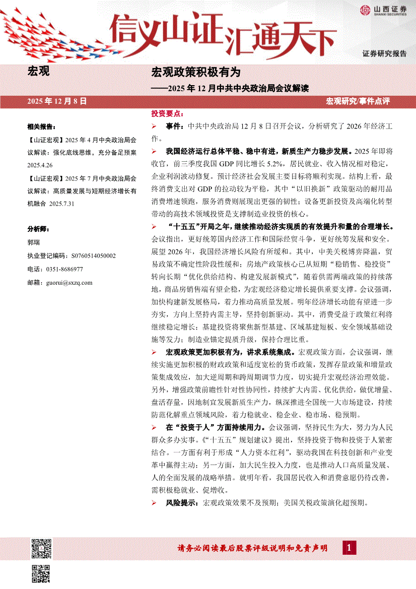 研报:山西证券-2025年12月中共中央政治局会议解读:宏观政策积极有为-251208