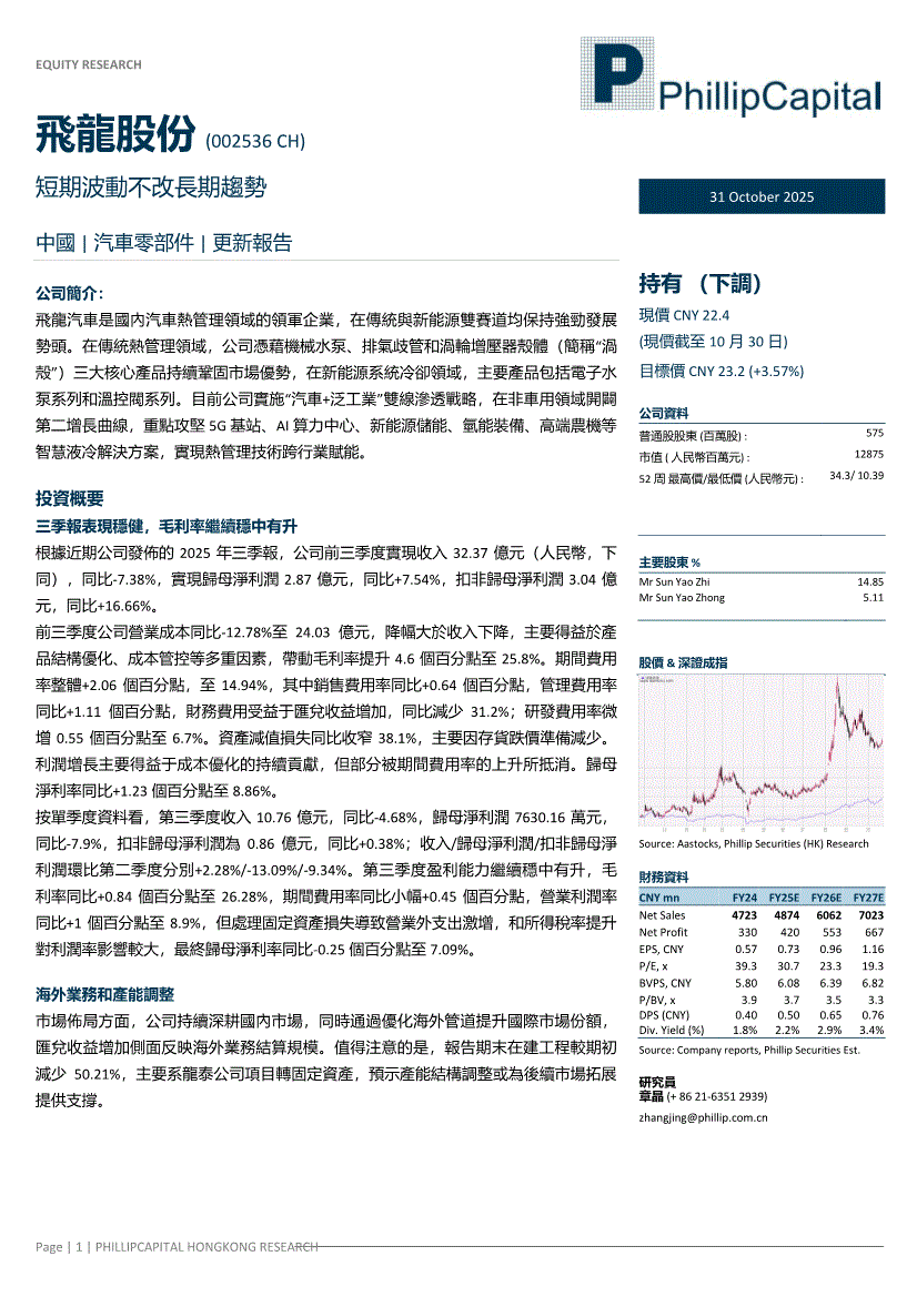 飞龙股份研报:辉立证券-飞龙股份-002536-短期波動不改長期趨勢-251031