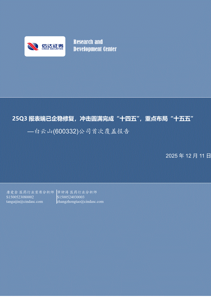 白云山研报:信达证券-白云山-600332-公司首次覆盖报告:25Q3报表端已企稳修复,冲击圆满完成“十四五”,重点布局“十五五”-251211