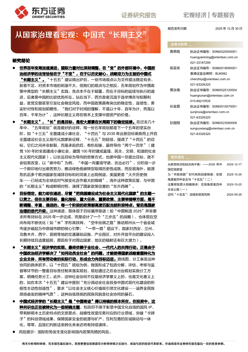 研报:东方证券-从国家治理看宏观:中国式“长期主义”-251230